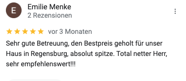 Die Kernfrage ist: Wie motiviert ist der Immobilienmakler und welche Wege nutzt er um potentielle Käufer für Ihre Immobilie zu finden? Gehen Sie mit Ihrer Verkaufsabsicht zu Ihrer Bank, bekommt der zuständige Immobilienmakler keine Provision für seine Arbeit! Seine Dienste sind mit seinem Gehalt abgegolten! Entscheiden Sie selbst, wie motiviert wären Sie da? Natürlich wird der Immobilienmakler der Bank seiner Arbeit ordentlich nachgehen, keine Frage. Aber reicht Ihnen das, oder wollen Sie, dass Ihre Immobilie mit vollem Einsatz, Herz und Begeisterung, am besten rund um die Uhr, vermarktet wird? Denn nur so holt man den maximal möglichen Ertrag! Und das sollte das Ziel sein! Schließlich haben Sie für Ihre Immobilie schwer gearbeitet! Und wenn Sie geerbt haben, haben wahrscheinlich Ihre Eltern schwer gearbeitet! Deshalb wird an den verkauft, der für diese Arbeit am meisten bezahlt! Seit 1996 sind wir nun in Regensburg und München tätig! Wir makeln, kaufen, sanieren und verkaufen Immobilien schon sehr sehr lange! Aus dieser langen Zeit haben wir mehr Wissen und mehr Können erworben! Für Sie bedeutet das mehr Sicherheit und mehr Geld für den Verkauf Ihrer Immobilie! Zudem fertigen wir für Ihre Immobilie ein kostenloses Dokumentationsvideo an, um so mehr und überregionale Käufer anzulocken! Sehen Sie selbst, in unserer Rubrik Angebote und Referenzen auf unserer Homepage, wie wir so arbeiten!